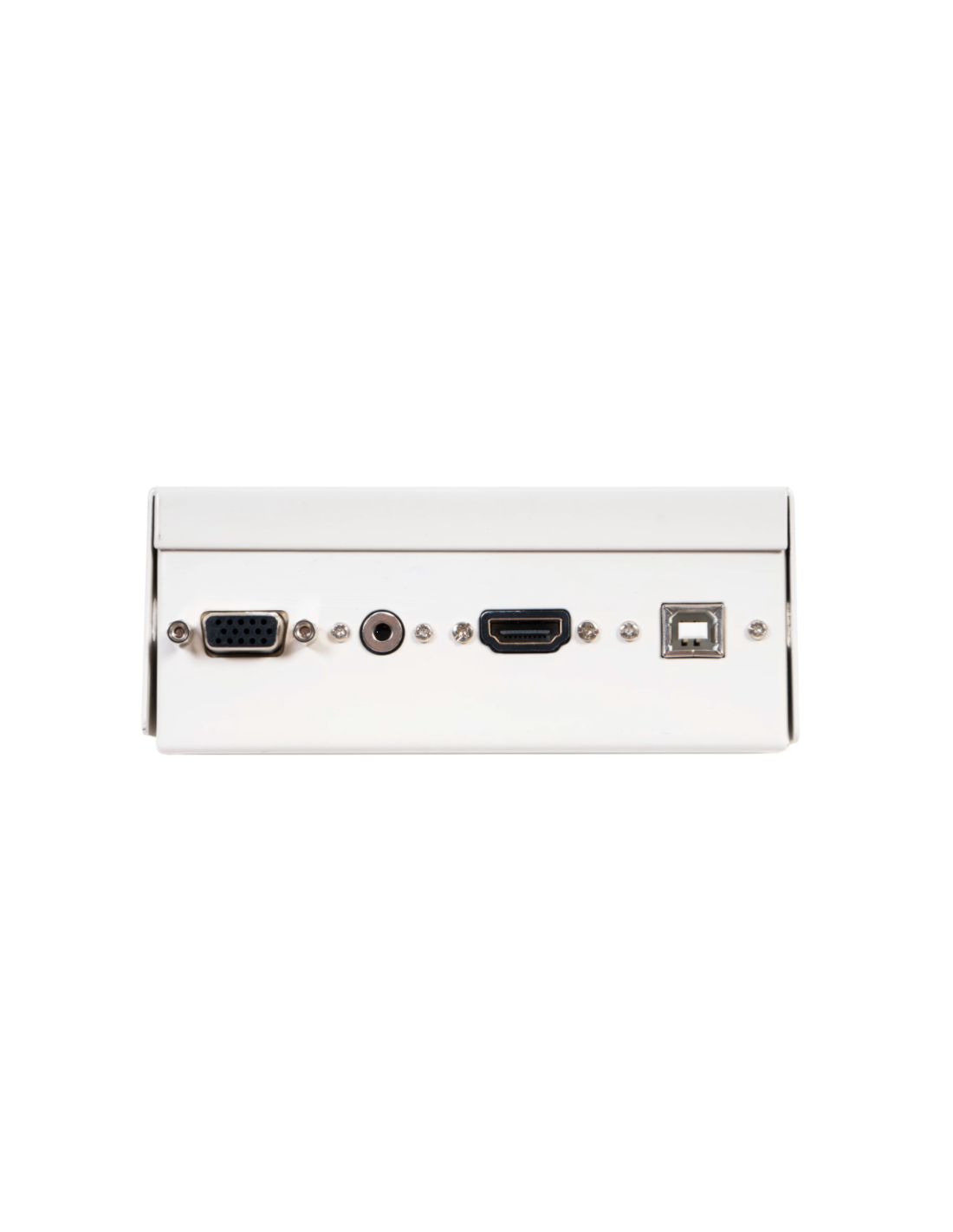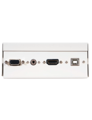 Centraliza las conexiones de A/V (VGA, mini jack, USB-B y HDMI).