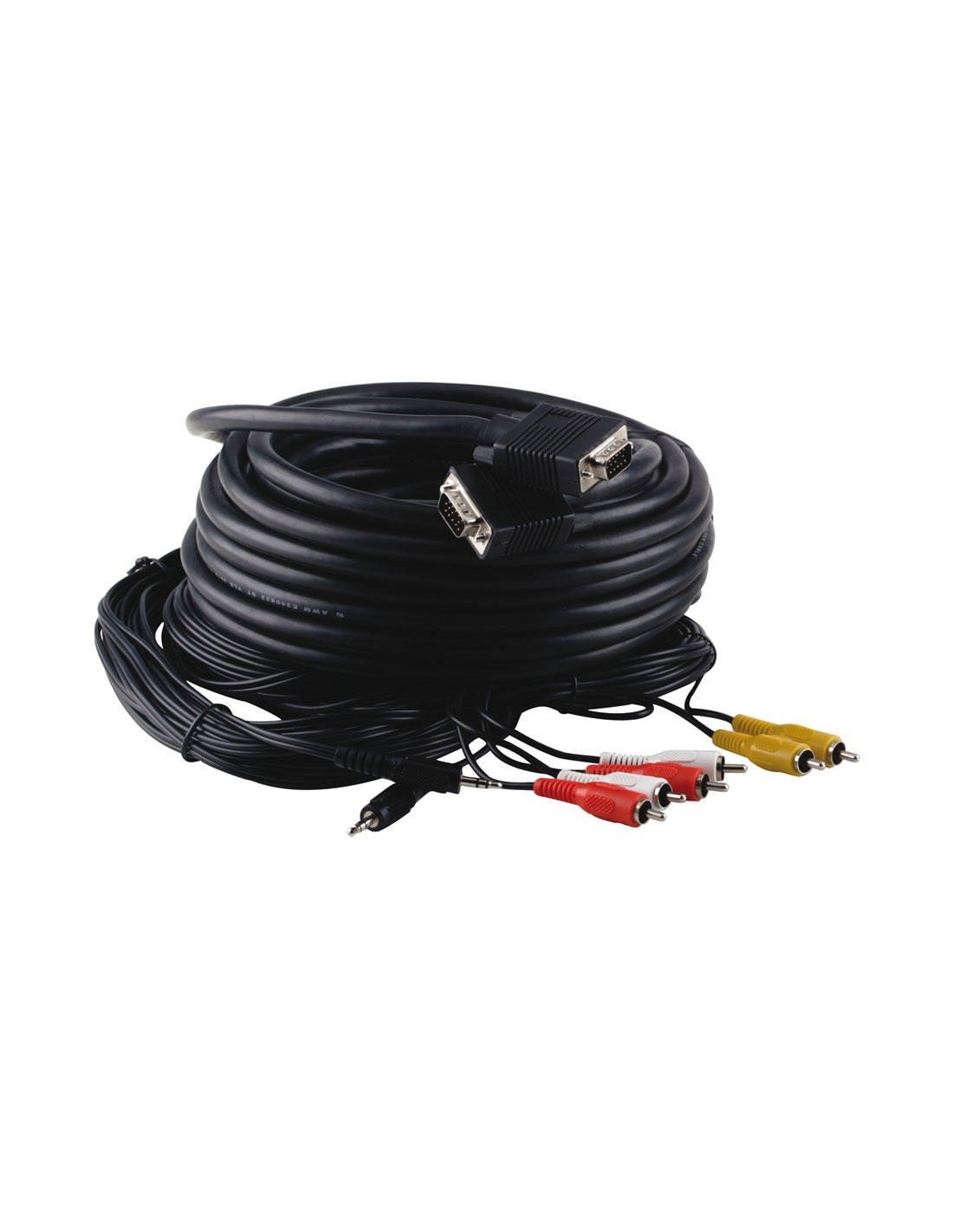 5Caja conexiones metálica, 1x VGA, 1x audio 3.5 mm, 1x video compuesto, USB B macho y cables de 15 metros incluidos.